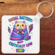 Design vibrante e colorido com um gato aconchegante embrulhado em um cobertor, sentado ao lado de uma pilha de livros tomando café. O texto colorido diz: "Bateria social criticamente baixa". Esse design está disponível em uma grande variedade de produtos.