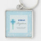 Presente perfeito de batismo, lembrança, doação ou essência do partido para felicitar um menino enquanto é batizado. A olhadela na frente está sobreposta em azul claro e envia bênçãos a ele. Uma cruz mostra a natureza cristã ou católica do evento religioso especial.