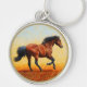 Cavalo selvagem da baía que corre sobre um campo de prado seco. Trabalho de arte realista criada de uma pintura original de óleo pelo artista equino e da fauna selvagem Crista S. Forest.