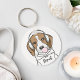 O design apresenta uma ilustração de um beagle relaxante vestindo fones de ouvido e soprando a borbulha rosa. Com sua cor e texto de fundo favoritos personalizados, ele faz um chaveiro bonito, engraçado e único.
