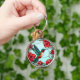 Nessa bonito chaveiro é uma imagem impressionante de um beija-flor ao lado de um grupo de flores vermelhas. As cores do beija-flor são azul verde e vermelho, o que complementa as imagens das flores e o fundo azul claro do céu. Elegante, brilhante e colorido! Certifique-se de ver os brincos e colar correspondentes na nossa loja.