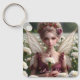 Uma bela fada cabeleira, com asas brancas e coloridas, vestindo um vestido bonito de burgundy e um colar de granada, segura um cravo branco solteiro enquanto está em um campo de cravos. O texto pode ser facilmente alterado ou eliminado se pretender que a imagem fique sem texto.