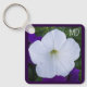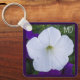 Esta chaveiro simples e bela mostra uma foto de petúnia branca com iniciais personalizáveis e um versículo Bíblia adorável do livro de Isaiah.