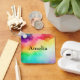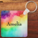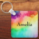Chaveiro com fundo aquoso com cores do arco-íris.