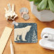 Uma design de arte divertida com um encantador Urso Polar majestoso olhando para o céu noturno ártico, enquanto grandes flocos de neve brancos fluffy caem ao seu redor.