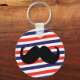 Chaveiro bigode com faixas vermelhas, brancas e azuis