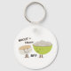 Um chaveiro com ilustração de um biscoito e uma tigela de molho com texto, "Biscoito + Gravidade BFF."