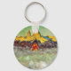 Imagem colorida da montanha sobre uma névoa nebulosa. Pequenas cavernas na montanha são pouco visíveis. Belas artes por Thoedore Kittelsen.