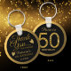 50th birthday thank-you favor keychains featuring classy gold typography on a sleek black background. The bold glitter “50” adds a glamorous touch, making these keepsakes perfect for celebrating a golden milestone in style.