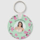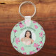Crie um presente especial quando adicionar sua própria foto e texto a este chaveiro. Sua foto aparece em um quadro elegantemente definido contra um fundo verde-menta e cercado por flores cor-de-cereja rosa.