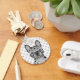 A ilustração original do desenho de Destei de uma cor azul-de-fungo bonita de cor francesa Bulldog / cabeça de um cão da raça francesa. O fundo tem um padrão de pegadas de cinza.