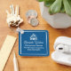 This professional realtor keychain is custom made with your real estate company name under the modern cursive script and house image. This chic blue and white realty business promotional item feature a house logo image for home builder or realty agent company marketing.