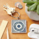 Chaveiro Blue White Floral Chinês redondo