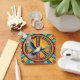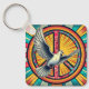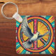 A pomba e o sinal de paz em vermelhos, azuis, lacrimejantes e vermelhos hippie retro boho.