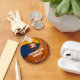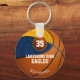 Este chaveiro de basquete personalizado para meninas apresenta um gráfico de basquete com nome de jogador facilmente personalizável e número de camisa mais nome da escola e nome de mascote - o basquete tem dois painéis coloridos, um azul e um ouro, misturado com uma textura digitalmente criada para uma aparência artística - por katz_d_zynes