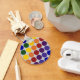 Este item personalizado apresenta linhas de bolinhas coloridas arco-íris em um fundo de cinza. A cinza tem um sentimento quase metálico. As linhas offset formam diagonais de cada cor: violeta, índigo, azul, verde, amarelo, laranja e vermelho. Imagem criada digitalmente. Copyright © 2011 Claire E. Skinner. Todos os direitos reservados.