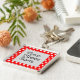 Personalize esta chaveiro vermelha e branca com a sua própria fotografia carregada digitalmente, substituindo a imagem do marcador de posição central pela sua própria fotografia.