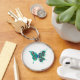 Borboleta detalhada, desenhada artificialmente, ficcional, verde, com penas verdes, bonitas e pavões em fundo branco.