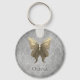 Guarde as chaves do seu carro e de casa com uma Chaveiro de borboleta. Chaveiro design apresenta uma borboleta vibrante e joalhada contra uma cor damasco elegante de cinza. Itens de presentes adicionais disponíveis com este design também.