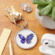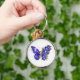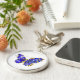 Borboleta de flores cinza, azul, safira, espumante com asa decorada com flores preciosos azuis com folhas de ouro sobre fundo branco.