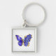 Borboleta de flores cinza, azul, safira, espumante com asa decorada com flores preciosos azuis com folhas de ouro sobre fundo branco.