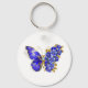 Borboleta de flores cinza, azul, safira, espumante com asa decorada com flores preciosos azuis com folhas de ouro sobre fundo branco.