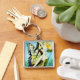 Grande chaveiro de metal de alta qualidade quadrada com a imagem de uma bela fêmea em um vestido ouro com asas coloridas de borboleta assistindo, sem rodeios, às borboletas acima da cabeça. Consulte chaveiro acrílico quadrado correspondente, botão quadrado e colar quadrado do lado do solteiro. Veja toda a coleção de Chaveiro do Roaring 20s nos TOUCHES ESPECIAIS | Seção Favoritos para festas.