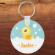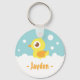 Um pato de borracha amarelo giro em um banho de bolhas.