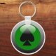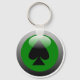* Ilustração de botão em forma de carta de baralho neste porta-chaves.