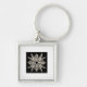 Um design branco da arte do fractal em um fundo preto reminiscente de um floco de neve ou de uma flor.
