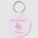 Uma encantadora corrente floral de chaves de manutenção para a sua dama de honra, esta design apresenta um fundo rosa suave com "Bridesmaid" escrito em uma fonte rosa adorável. Embaixo está um buquê floral rosa e azul. Sob o buquê está o nome dela escrito em lindas fontes cor-de-rosa. Personalize esta cadeia de chaves da dama de honra hoje! Trabalho de arte criado por: AMBilustrações http://www.etsy.com/shop/AMBillustrations/
