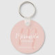 Adicione um toque pessoal ao seu casamento com chaveiro de madrinha personalizada. Este chaveiro apresenta o nome personalizado da madrinha em estilo de fonte branco moderno de script e monograma em estilo de fonte rotineiro rosa pincelado moderno como fundo com título e data de casamento em estilo de fonte branco moderno de sans serif em fundo rosa pincelado. Também perfeito para a madrinha de casamento, mãe da noiva e muito mais.