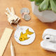 Um peixe-dourado charmoso soprando bolhas azuis. O peixe-dourado parece estar realmente flutuando. Design de peixe bonito!
