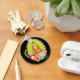 Buda senta-se meditando em uma flor de lótus enquanto segurava uma flor de lótus menor na mão! Fundo verde com lindas flores de primavera em cor rosa, azul, amarela e laranja rodeando Buda para criar um presente budista relaxante!