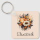 Um chaveiro com um buquê de flores elegante, mas gótico. Compostos por tulipas de laranja, margaridas amarelas, folhas de cinza e alvéolos e alguns acentos de orango.