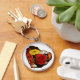 Coração floral! Um anel-chave redondo premium com uma fotografia colorida de rosa e buquê de flor margarida cortada numa forma cardíaca de borda irregular sobre um fundo transparente. Clique em "Personalizar!" para adicionar texto e selecionar uma cor de fundo diferente de branco em "Editar" e em "Fundo.
