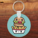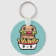 Chaveiro com uma ilustração super fofa de comida. Este design tem um hambúrguer divertido e batatas fritas.