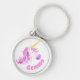 Um unicórnio mítico personalizado nome cor-de-rosa e água púrpura, chaveiro de arte branca. Ideal para um presente personalizado para uma garota que ama unicórnios. Pintura a aquarela branca e única e design por Sarah Trett www.sarahtrett.com para www.mylittleeden.com