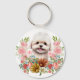Chaveiro Cachorro Maltês com Flores, Cachorro Maltês