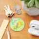 Cat Nap cat está fazendo o que os gatos fazem melhor. Ela está vestindo um adorável topo rosa com estrelas e capas listradas aqua. A lua está pendurada sobre o gatinho do Cat Nap, olhando para cima com um sorriso. Gatinho também tem um sorriso feliz, então você sabe que ele está tendo sonhos doces. O texto de "Cat Nap" está sobre um fundo de verde limão aspergido com estrelas amarelas e pontos cor-de-rosa. Cat Nap cat é um dos 10 gatos da coleção de tecidos "Meow Meow" de Phyllis Dobbs.