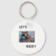 Chaveiro de urso de pelúcia que diz Vamos RIde. Ele tem um par de ursos peludos andando de moto no centro da chaveiro.