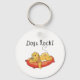 Um cachorro marrom giro feliz relaxando na sua cama de cachorro e o texto preto diz "Cachorro Rock!" em nossas camisetas, canecas, mousépias, botões, cartas e muito mais!