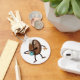 Caráter de café de argila feito com argila polimérica que é assada em um forno e pintada com acrílicas. O produto final é fotografado e aprimorado digitalmente.