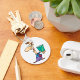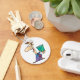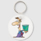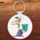 Um homem de pé segurando uma caixa que tem a palavra qualidade nela. Esta design parece realmente eficaz nesta Chaveiro