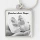 Calçados de bebê brancos delicados embalados nas mãos da avó. Personalize estes produtos para a avó.