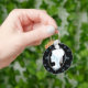 Um retrato bonito ao estilo camameo, quando você olha mais de perto você pode ver o crânio da adorável senhora esboçado em azul.