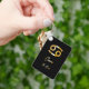 Chaveiro de sinal zodiaco elegante com design de ouro sobre fundo preto.