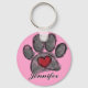 Impressão de pata de cão e aquarela cardíaca em vermelho, preto e cinza. Correntes-chave personalizadas para homens e mulheres. Versão em segundo plano rosa. Editar nome para personalizar. Ideia de presente para amantes de cães.