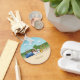 A ilustração original do desenho de Destei de um cão da raça Papillon, cor de casaco vermelha, com algum equipamento de agilidade canina. Há um obstáculo verde e amarelo à imagem A, um túnel azul, alguns polos de tecelagem listrados vermelhos e brancos e um salto de pneus cor laranja. Há também uma área de texto personalizável para um nome ou outro texto personalizado.