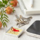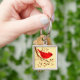 Cardinal vermelho do norte em ramos estilizados com folhas decorativas em cores de outono em chaveiros
